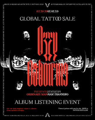 El 20 de febrero será la víspera del estreno del nuevo álbum de Ozzy Osbourne titulado Ordinary Man que se lanzará el 21 de febrero y se llevará a cabo una épica celebración global en más de 50 ciudades de todo el mundo con eventos de venta de tatuajes y fiestas de escucha del álbum antes que nadie. Esto será seguido por la aparición de Ozzy en una tienda de discos en Hollywood, California, llamada Amoeba Records, en donde estará firmando autógrafos el mismo día del estreno (21 de febrero), siendo su primera firma en una tienda después de 10 años.